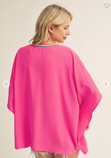 Relaxed yet refined, this loose-fit solid top features drop shoulders and soft batwing sleeves for an effortlessly draped silhouette. The contrast ...