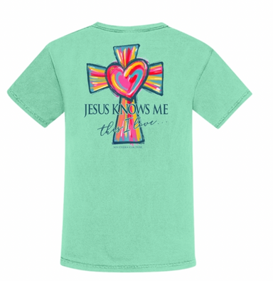 Bright, fun, and full of personality, this tee is perfect for anyone who loves a pop of color and a faith-forward message. The “Jesus Knows Me” gra...