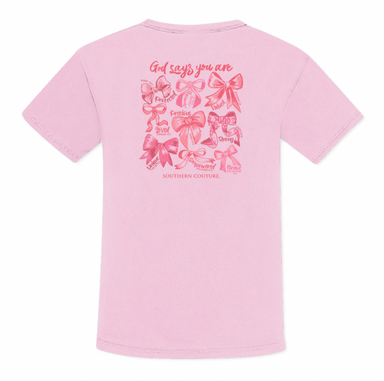 Soft, cozy, and full of inspiration, this tee features “God Says” messaging paired with empowering words drawn from scripture. The gentle design is...