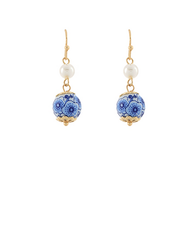 These elegant French hook earrings blend delicate blue beads with subtle gold accents, perfectly capturing that timeless blue & white floral Ch...