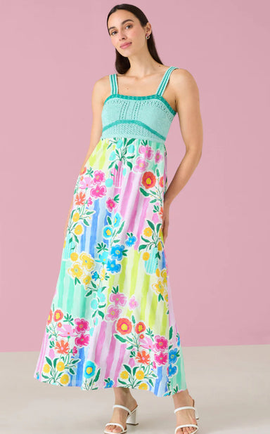 The Lavinia Dress is a standout occasion piece, featuring a textured 100% organic cotton knit bodice and a flowy 100% cotton poplin column skirt—th...