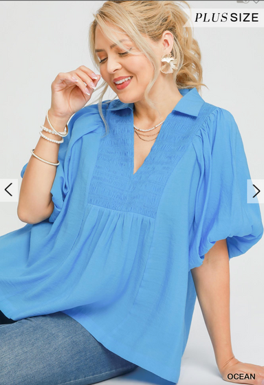 Soft as a breeze and full of charm. From its floaty bubble sleeves to its smocked bodice and yoke detail, this top brings just the right amount of ...