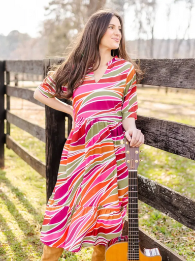 Brighten your wardrobe with the Tessa dress, bursting with vibrant colors that bring joy and energy to any day. This easy pullover style features a...
