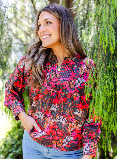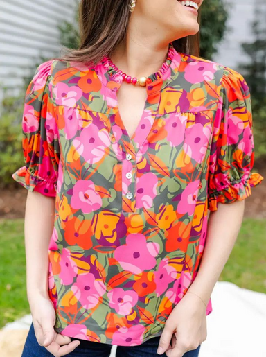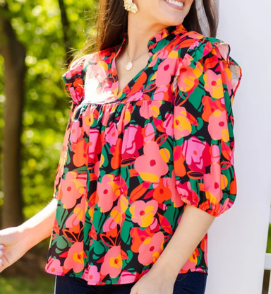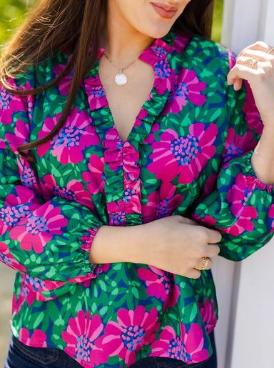 Ruffled accents meet a brilliant floral print in the Parker Top — the perfect mix of effortless charm and everyday elegance. Featuring a flattering...