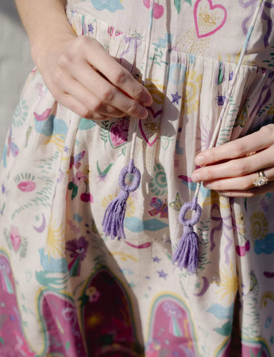 The Lavinia Dress is a standout occasion piece, featuring a textured 100% organic cotton knit bodice and a flowy 100% cotton poplin column skirt—th...