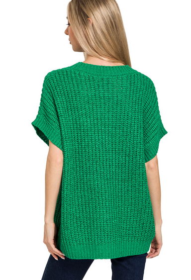 Say hello to your new closet crush! This short sleeve sweater is a chic twist on a classic knit. With a round neckline, relaxed fit, and soft light...