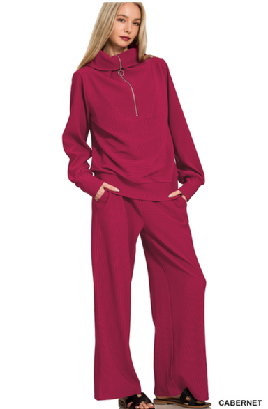 The lounge set you’ll live in ✨ Featuring a high-neck half-zip pullover and matching ribbed knit pants, this set blends comfort and style with ease...