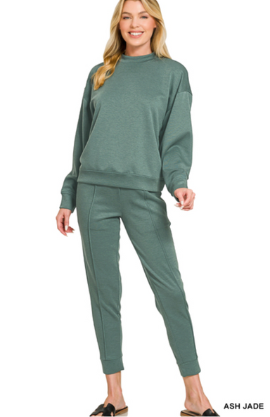 Comfy never looked so chic ✨ This plus-size 2-piece set features a classic crewneck pullover and matching pants in a smooth scuba fabric with the p...