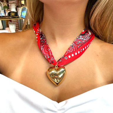Bring bold red vibes and a touch of love to your game day look. This self-tie bandana print scarf is lightweight but makes a statement with its chu...